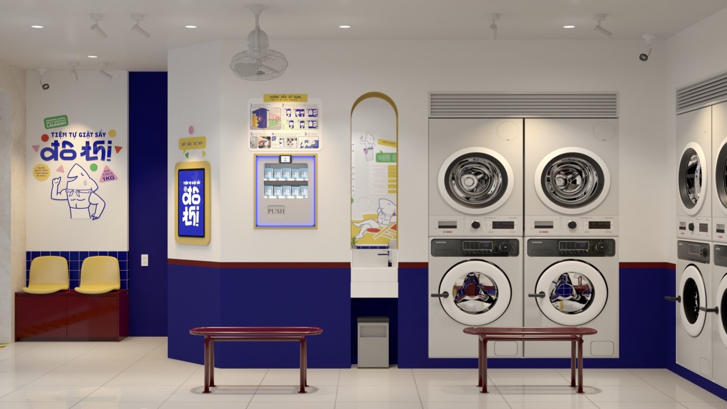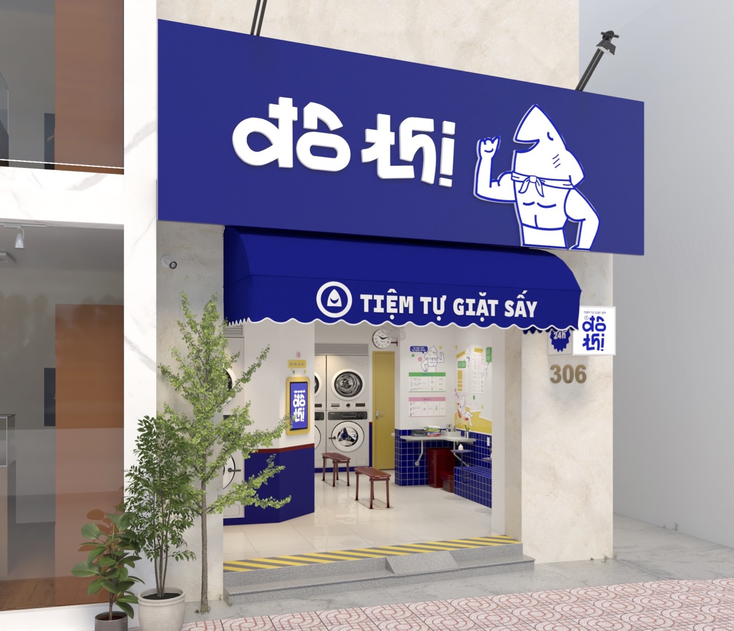 Hình ảnh thiết kế phối cảnh cửa hàng Giặt sấy tự động thương hiệu Đô Thị